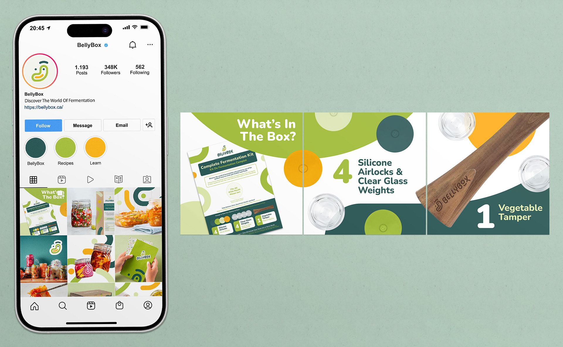 To further establish BellyBox as a reliable fermenting company, I designed potential web applications and a social media feed that allow the audience to better explore the brand, learn about fermentation, and engage with its products.